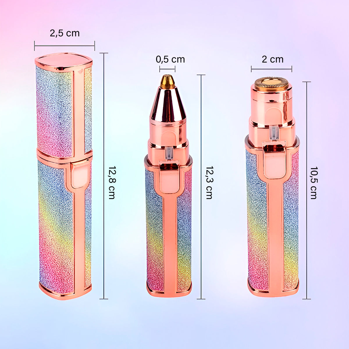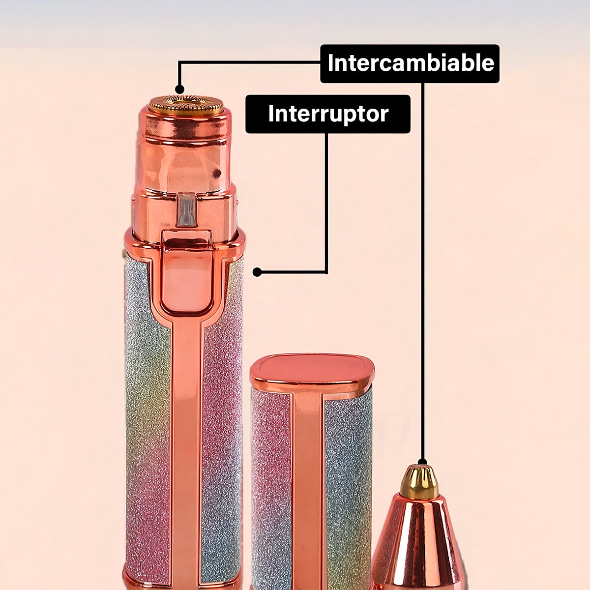 Descubre una nueva forma de depilarte sin dolor, sin irritaciones y sin complicaciones. Esta depiladora eléctrica 2 en 1 para mujer cuenta con doble cabezal intercambiable para el rostro, ideal para bigote, nariz y cejas. Gracias a sus cuchillas redondeadas de acero inoxidable, protege la piel sensible mientras ofrece un afeitado suave y preciso.